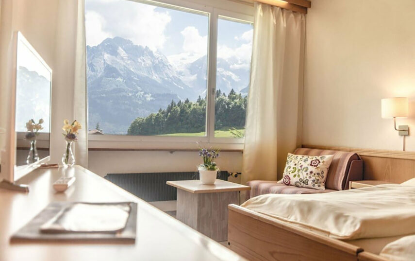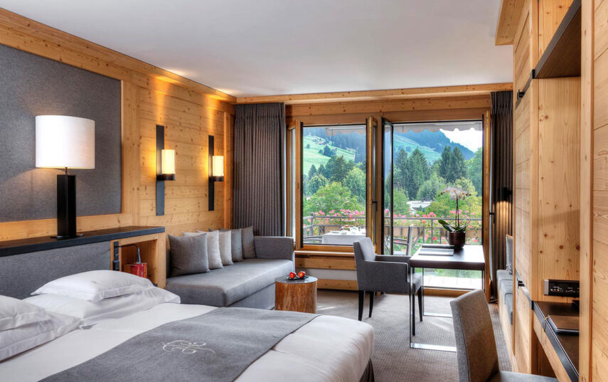 Our Deluxe Double Rooms with Matterhorn view are designed in a European boutique style and feature one large Queen Size double or two single beds. The generous living room area with couch can accommodate one extra bed. While sitting on lounge chairs of the south-facing balcony, you can enjoy the stunning views of the Matterhorn, some fresh mountain air and the mild afternoon sun.